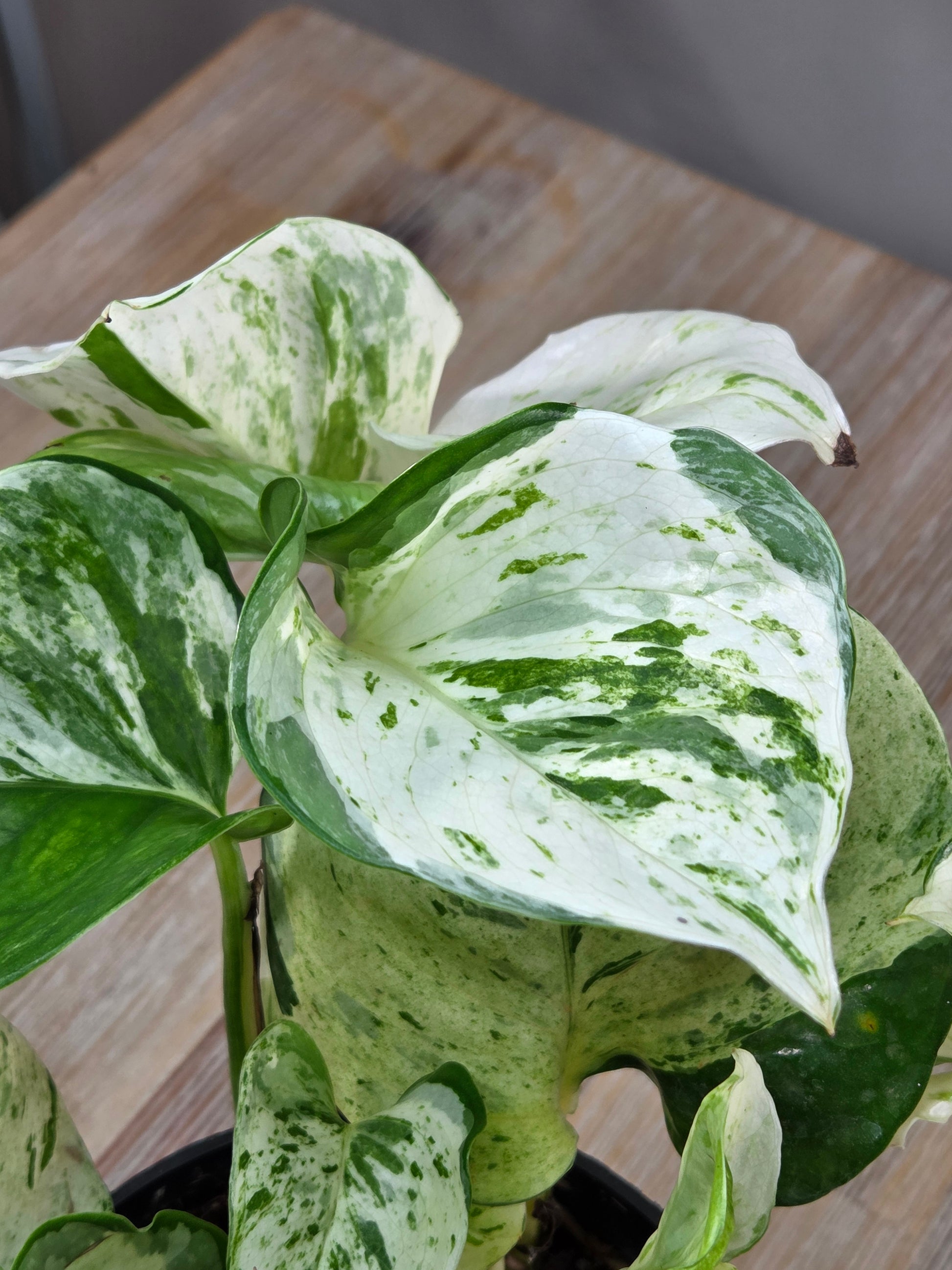Bring home this beautiful Epipremnum Manjula, also known as Happy Leaf Pothos. This stunning variegated plant features creamy white and green marbled leaves that will brighten any space. Perfect for plant lovers of all experience levels, this easy-care houseplant thrives in various light conditions and adds a touch of natural elegance to your home.